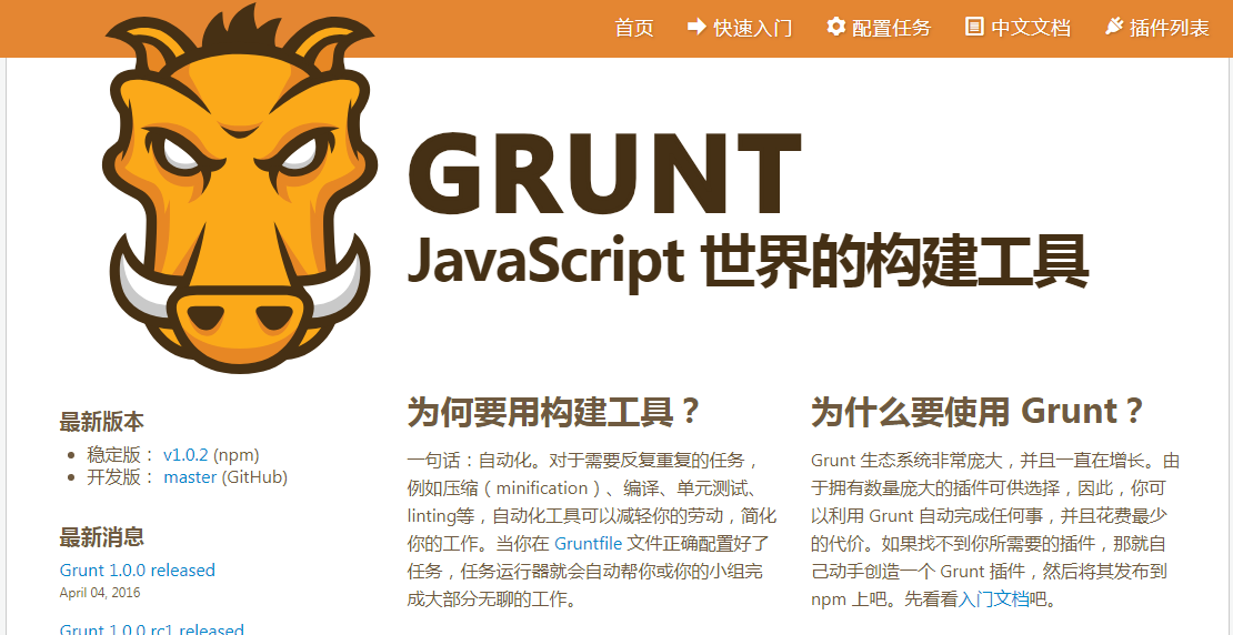 grunt官网的插件列表页面 http://www.gruntjs.net/plugins