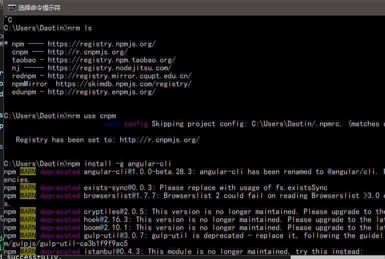 注意:有时候安装总是失败,npm不能使用淘宝镜像。