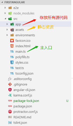 我们之前说过,一个angular项目至少要有一个主模块,app.module.ts就是主模块。上面的四个文件就是主模块中的一个组件。