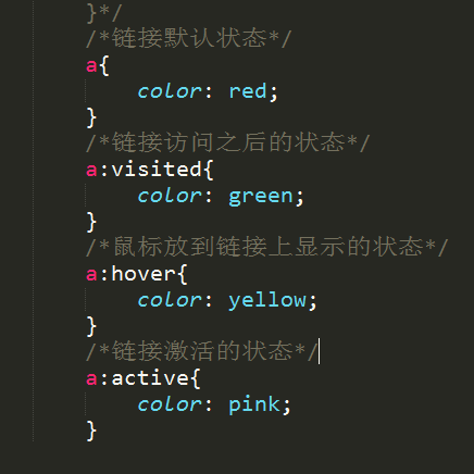 a:visited{属性:值;} /*链接访问之后的状态*/