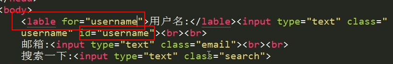 - 点击label也可以选择文本框:label for id 获取光标焦点