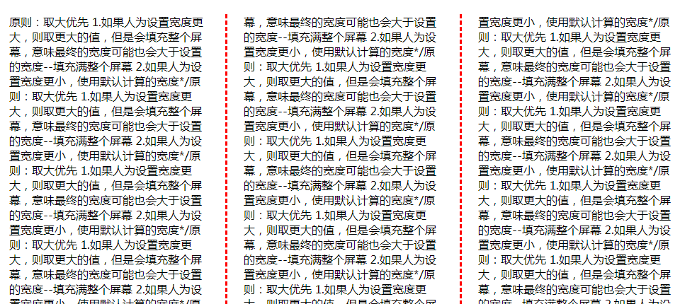 如果设置列的宽度和设置列的个数时自动计算的宽度有冲突时,原则是“取大优先”。