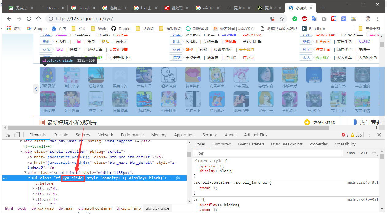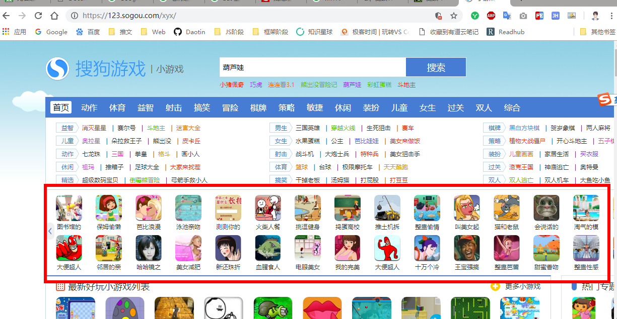 我们这里爬的是“搜狗小游戏”的一个列表,如下图: