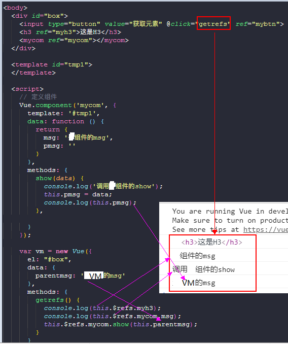 2、获取到组件元素后,就可以获取组件元素的data数据和methods方法。