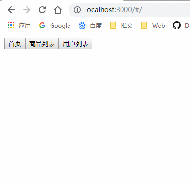 现在有Home,Goods和Users子组件,我们在点击跳转按钮的时候,页面通过<Component :is="currentPage" /> 改变了,但是地址url没变,这就是单页面应用。