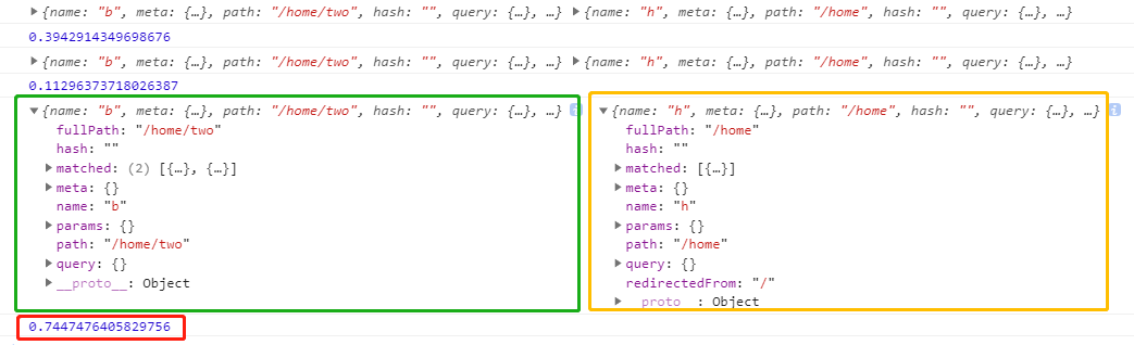可以看到只有随机数大于0.5的时候,页面才真正发生了变化,跳转到了/home/two: