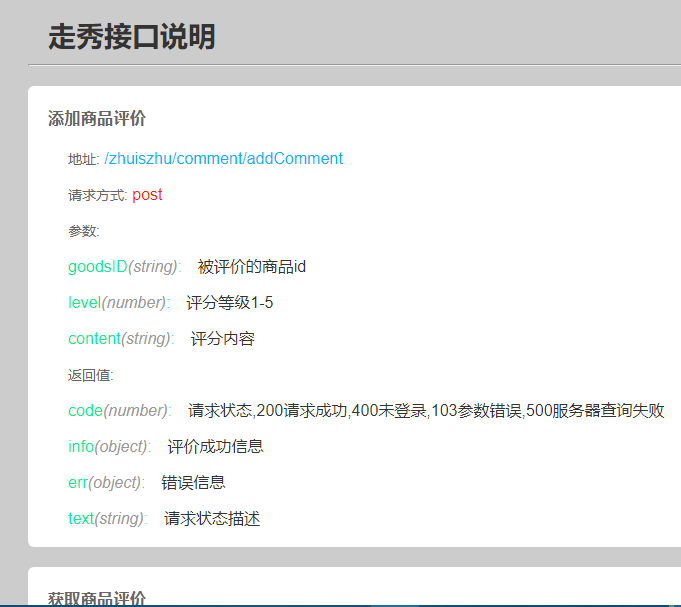走秀后台接口文档地址:http://39.105.136.190:3000/